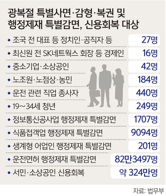 - 사면·복권 규모: 총 2,188명(정치인·경제인·생계형 포함)