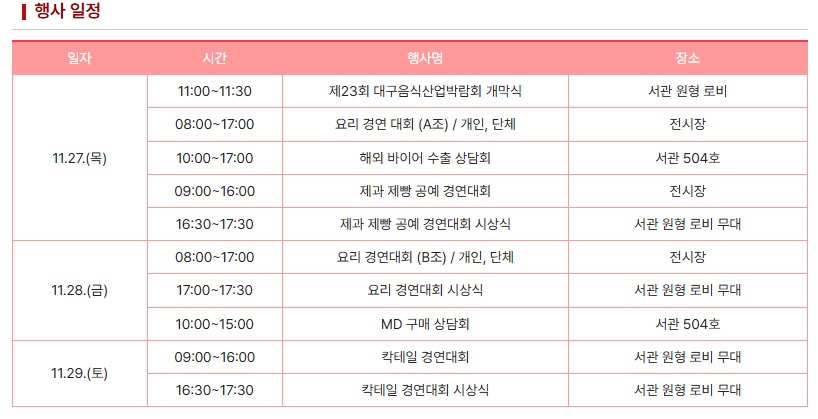 - 행사명: 제23회 대구음식산업박람회 (Daegu Food Industry Expo 2025)
