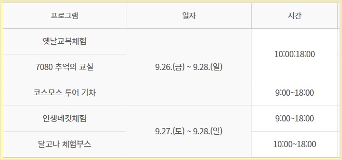 - 기간: 축제 3일(9.26~9.28)