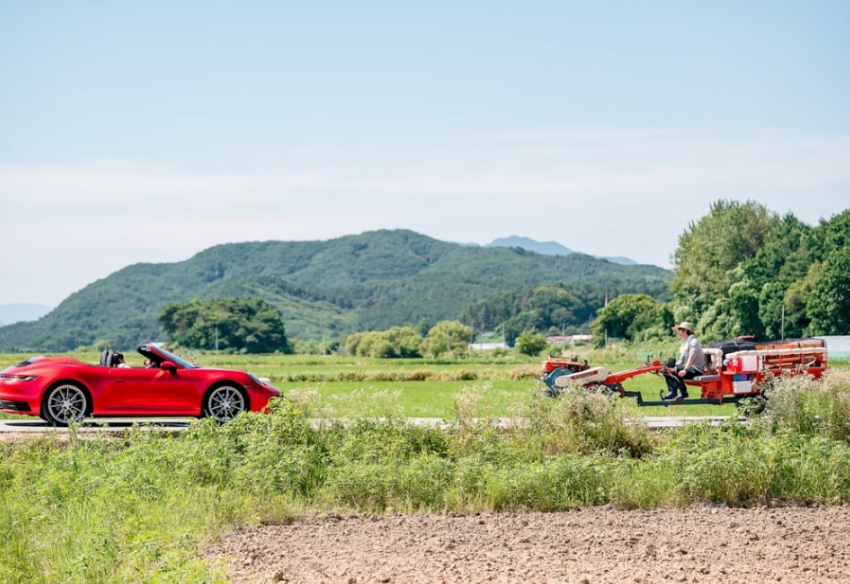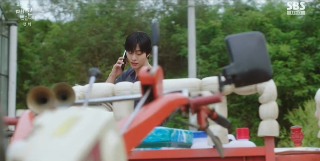 그리고 1회의 가장 강한 장면은 덕풍마을 입구에서 만들어집니다. 경운기를 몰고 가던 매튜 리는 마을 어귀를 막고 있는 스포츠카와 마주하고, 마을에서 나가는 유일한 길을 차가 가로막고 있는 상황에서 쉽게 물러서지 않습니다.