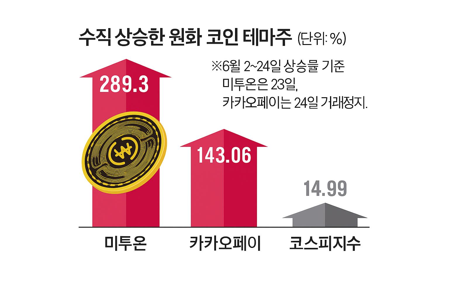 - 미투온: 1,877원(6월 2일) → 7,280원(6월 24일), 무려 289.3% 상승. 자회사의 카지노 게임 플랫폼이 스테이블코인과 연동된다는 소식에 폭등. 이후 거래정지 및 재개.