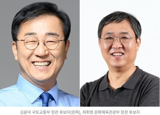최휘영 놀유니버스 대표가 문화체육관광부 장관 후보자로, 김윤덕 더불어민주당 의원이 국토교통부 장관 후보자로 지명되며 총 19개 부처 장관 후보자 지명이 모두 완료되었습니다.