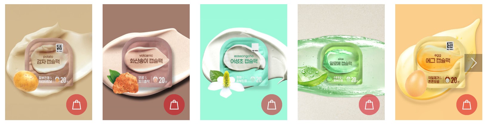 가성비 끝판왕!! 단 500원으로 8가지 종류의 팩을 피부 상태에 따라 골라 쓸 수 있습니다. 일주일에 1-2회 사용하면 피부 컨디션 끝장납니다.