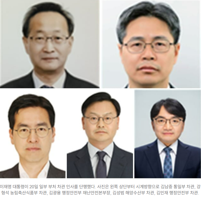 국정 추진력 강화를 위한 실무형 관료 중심의 인사가 단행되었습니다. 통일부·행안부·농식품부·해수부 등 주요 부처 차관급 5인 인선입니다. 격동하는 국제 정세와 장마, 지역균형발전 등 시급한 현안을 고려해 '즉시 전력감'을 전진 배치한 인사로 해석됩니다.