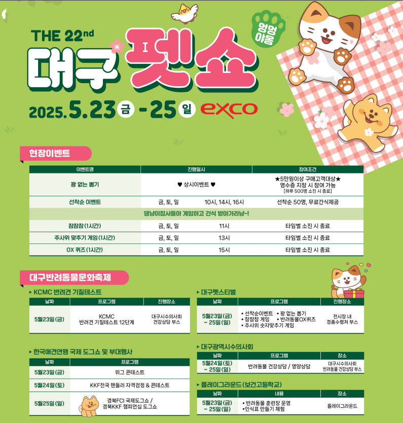 2025년 5월, 대구에서 열리는 제22회 대구펫쇼가 반려동물 가족들을 위한 특별한 축제로 찾아옵니다!