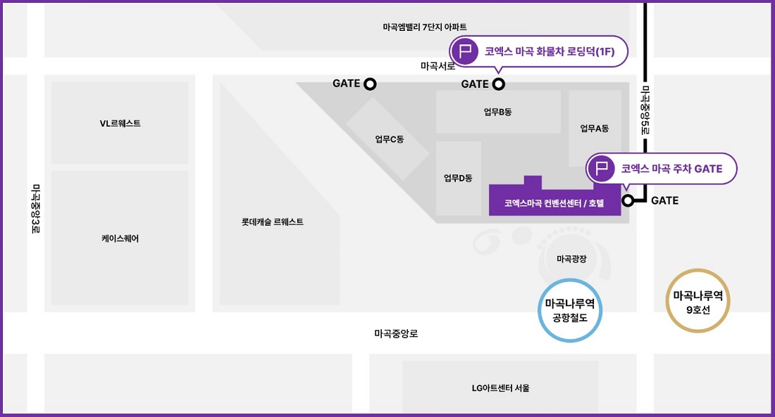 - 자가용·주차 – 코엑스 마곡 컨벤션센터 유료 주차장을 이용하게 되며, 행사 기간에는 혼잡이 예상되니 가능하면 대중교통 이용을 추천합니다. – 자가용 이용 시에는 네비게이션에 ‘코엑스 마곡 컨벤션센터’를 검색해 이동하면 됩니다.