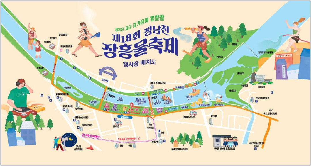 - 장흥 水 ZIP: 7월 26~8월 3일 / 슬로시티 홍보관, 포토존, 휴게 공간 등 여유롭고 즐거운 도심형 물축제 공간