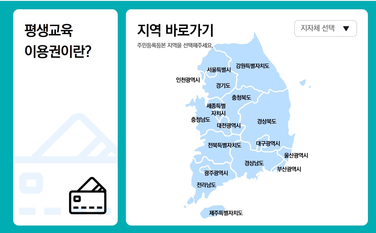 → 기본 신청 경로는 동일하지만, 일부 광역지자체에서는 별도 배정 인원, 우선 선발 기준 등을 운영하기도 하므로 해당 지자체 공고도 함께 참고하는 것이 좋습니다. - Q. 사용 가능한 교육기관은 어디서 확인하나요?